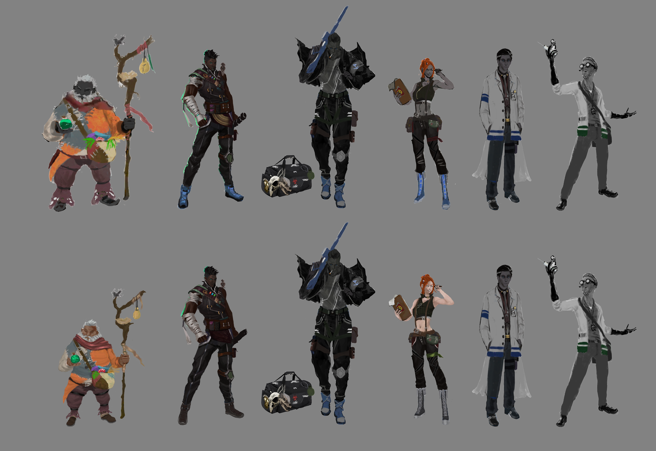 After the design document was approved, the next part was the exploration or “bluesky phase” in which I would provide several iterations of what my characters and creatures would look like in the world. At this point, there were 6 characters that I had to provide iteration for. Because my design document included locations with different mutations per environment, I also had to consider what creatures would look like if they were mutated due to genetic experiments, radiation, chemicals, and the like.